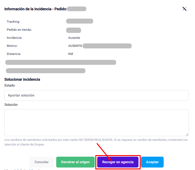 Se você não deseja que a segunda tentativa de entrega seja feita no próximo dia útil, não resolva o problema pelo painel da Dropea ou pelo sistema de rastreamento da GLS, pois isso obriga a transportadora a entregar no dia seguinte (e, caso não o faça, será penalizada). Em vez disso, se precisar que a segunda tentativa seja feita em uma data diferente, envie sua solicitação diretamente para a equipe de atendimento ao cliente.